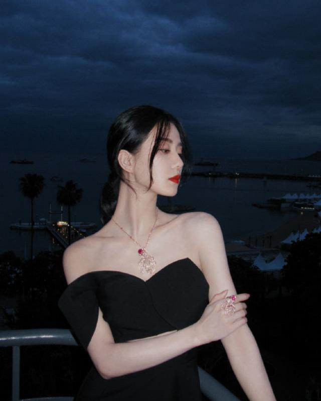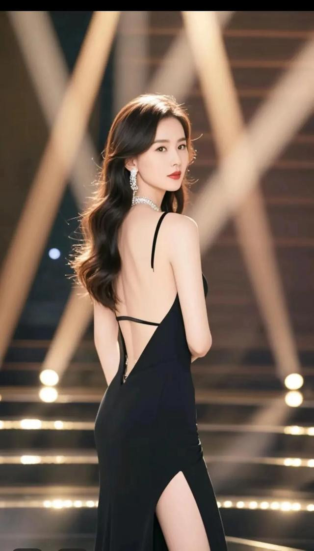 当日刘诗诗身着的这件深 V 领黑色长裙,无疑成为全场瞩目的焦点。修身的剪裁将其婀娜曼妙的身材曲线展露得淋漓尽致,黑色的质地于简约大气之中不失时尚韵味,垂顺的面料自然服帖身形,气质高雅且毫不矫揉造作。更令人心醉神迷的是她那展露的精致锁骨,恰似上好的瓷器一般白皙细腻。与此同时,刘诗诗脖颈上的那条项链更是将她的优雅气质诠释得入木三分。